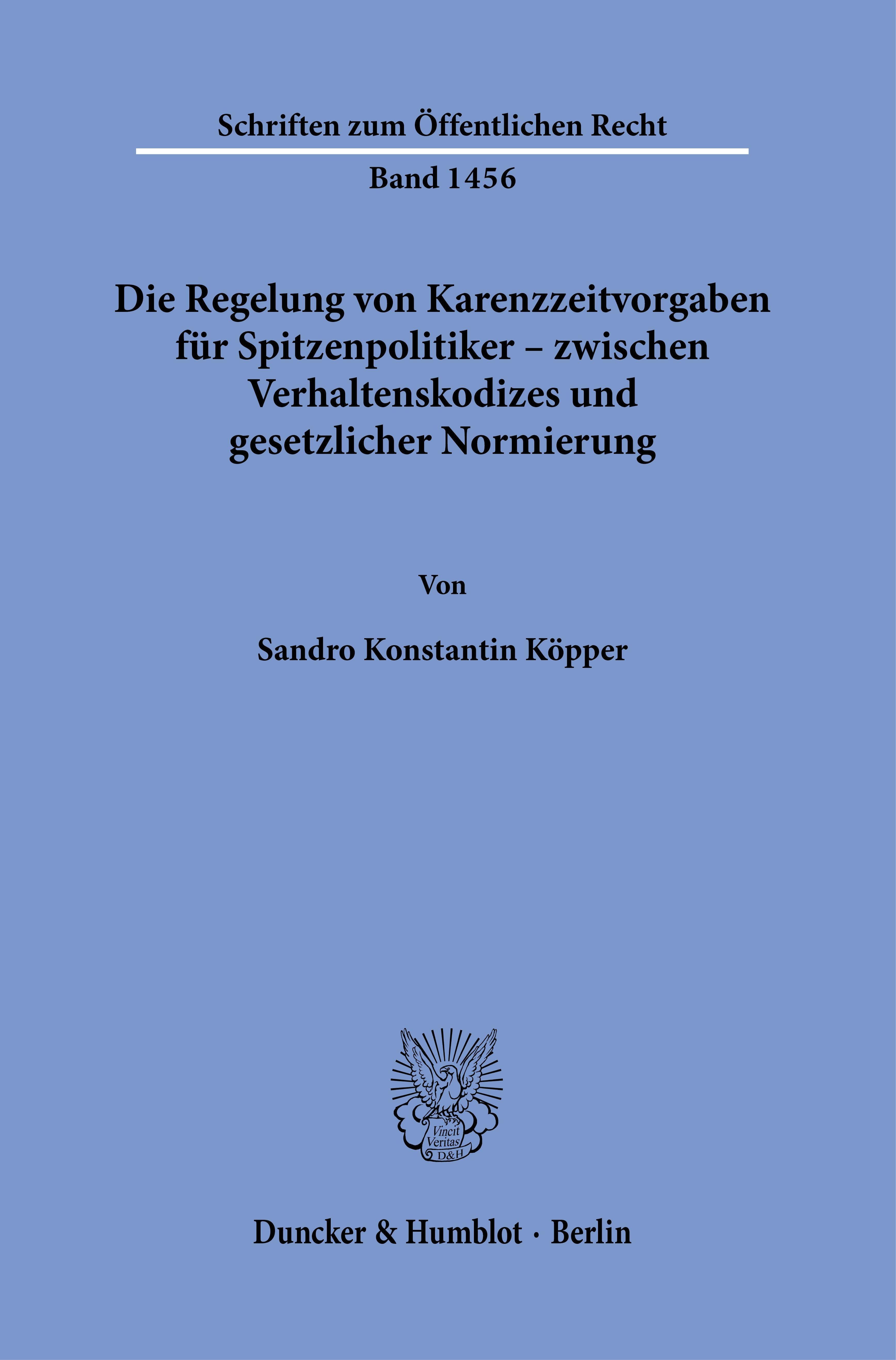 Die Regelung von Karenzzeitvorgaben für Spitzenpolitiker - zwischen Verhaltenskodizes und gesetzlicher Normierung. (niemiecki)