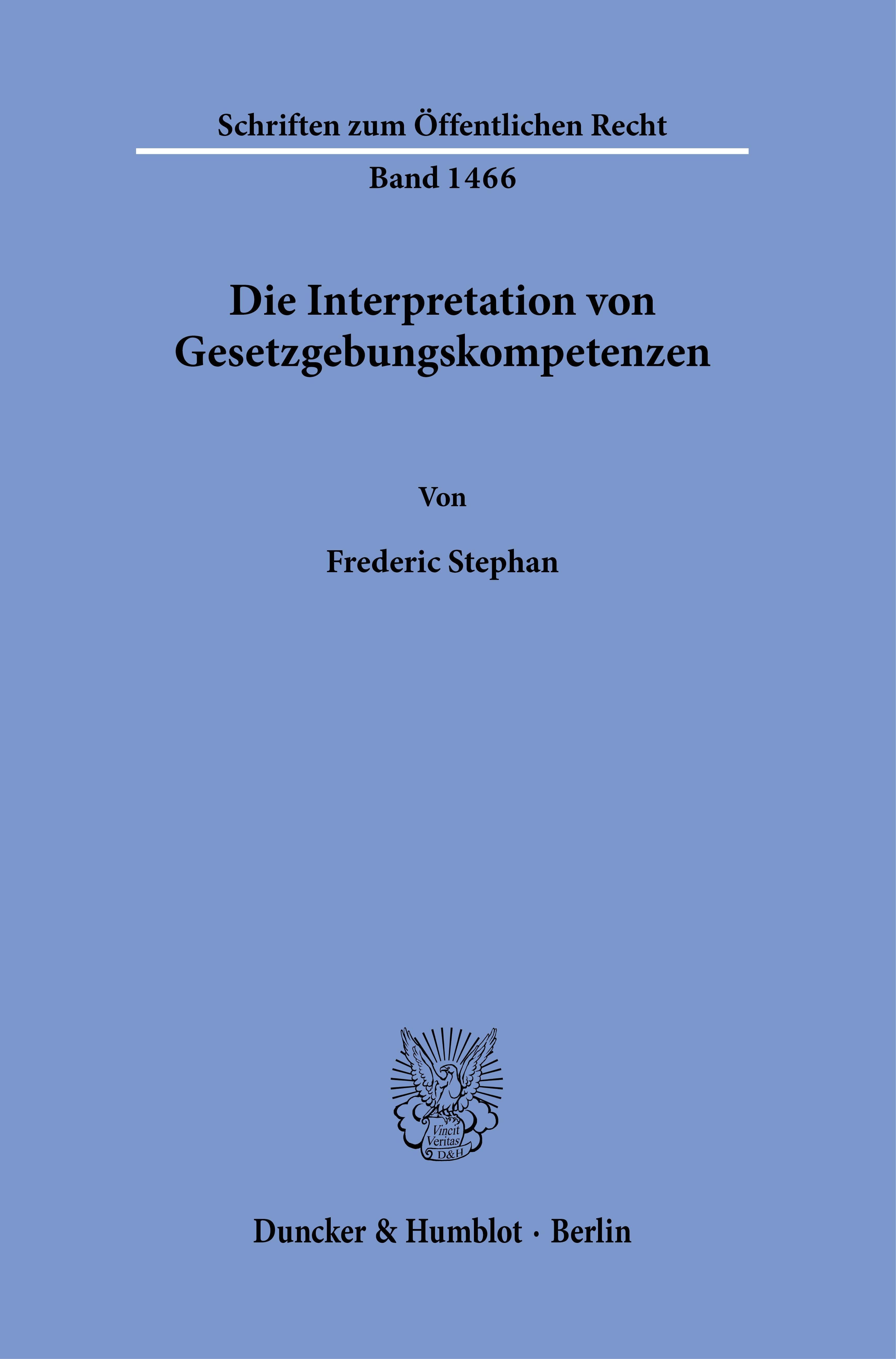 Die Interpretation von Gesetzgebungskompetenzen. (niemiecki)