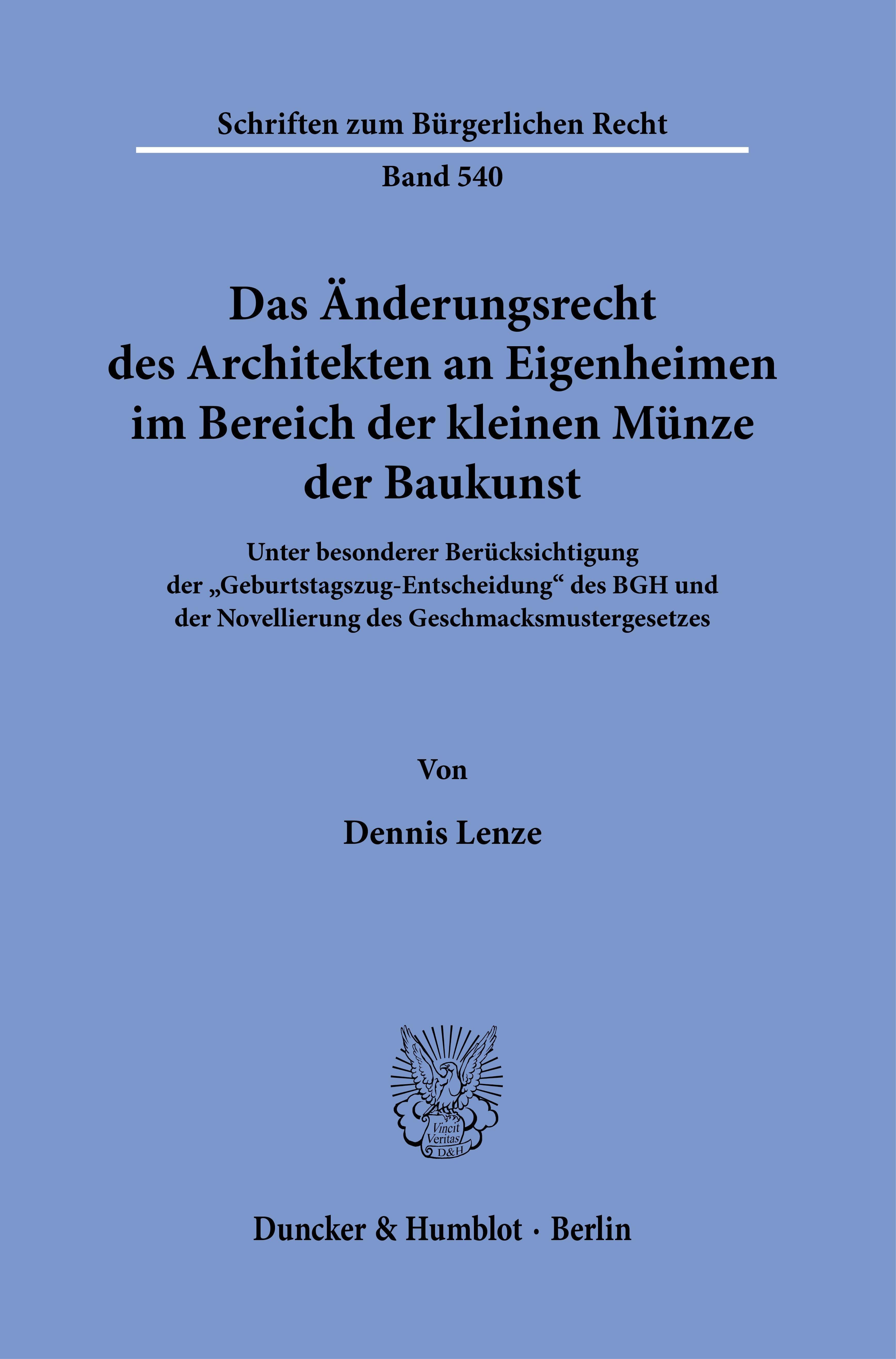 Das Änderungsrecht des Architekten an Eigenheimen im Bereich der kleinen Münze der Baukunst. (niemiecki)