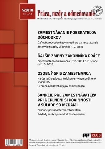 V publikácii nájdete zaujímavé témy ako - zamestnávanie poberateľov dôchodkov, ďalšie zmeny Zákonníka práce účinné od 1. mája 2018, osobný spis zamestnanca, vzdelávanie zamestnancov a iné zaujímavé témy. przeczytaj całość