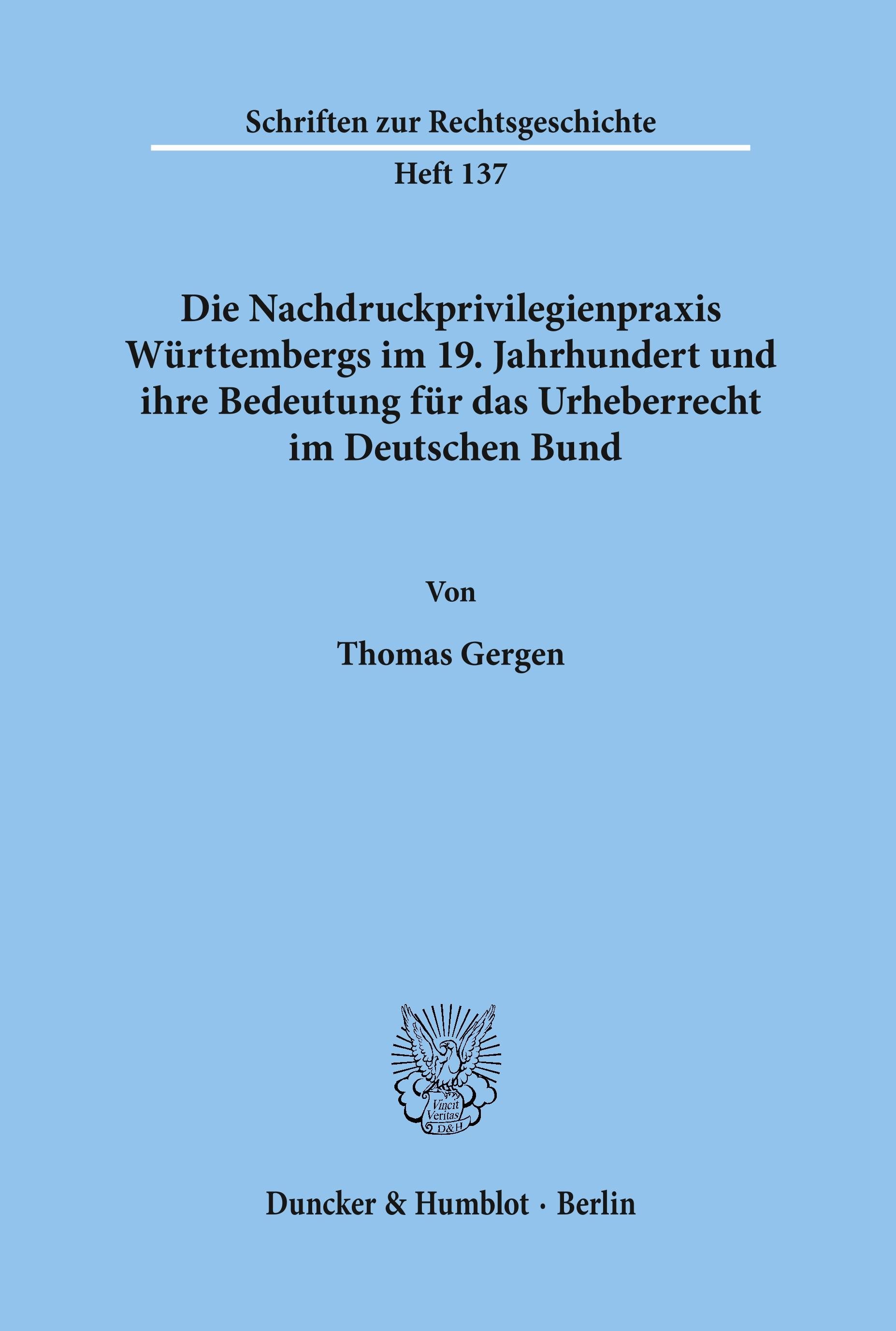 Die Nachdruckprivilegienpraxis Württembergs im 19. Jahrhundert und ihre Bedeutung für das Urheberrecht im Deutschen Bund. (niemiecki)