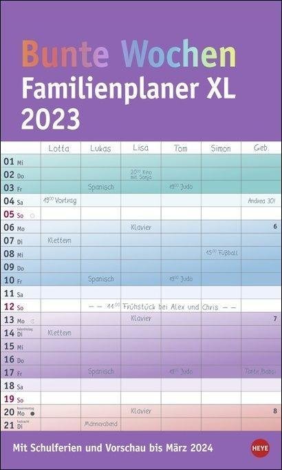 Bunte Wochen Familienplaner XL 2023 (niemiecki)