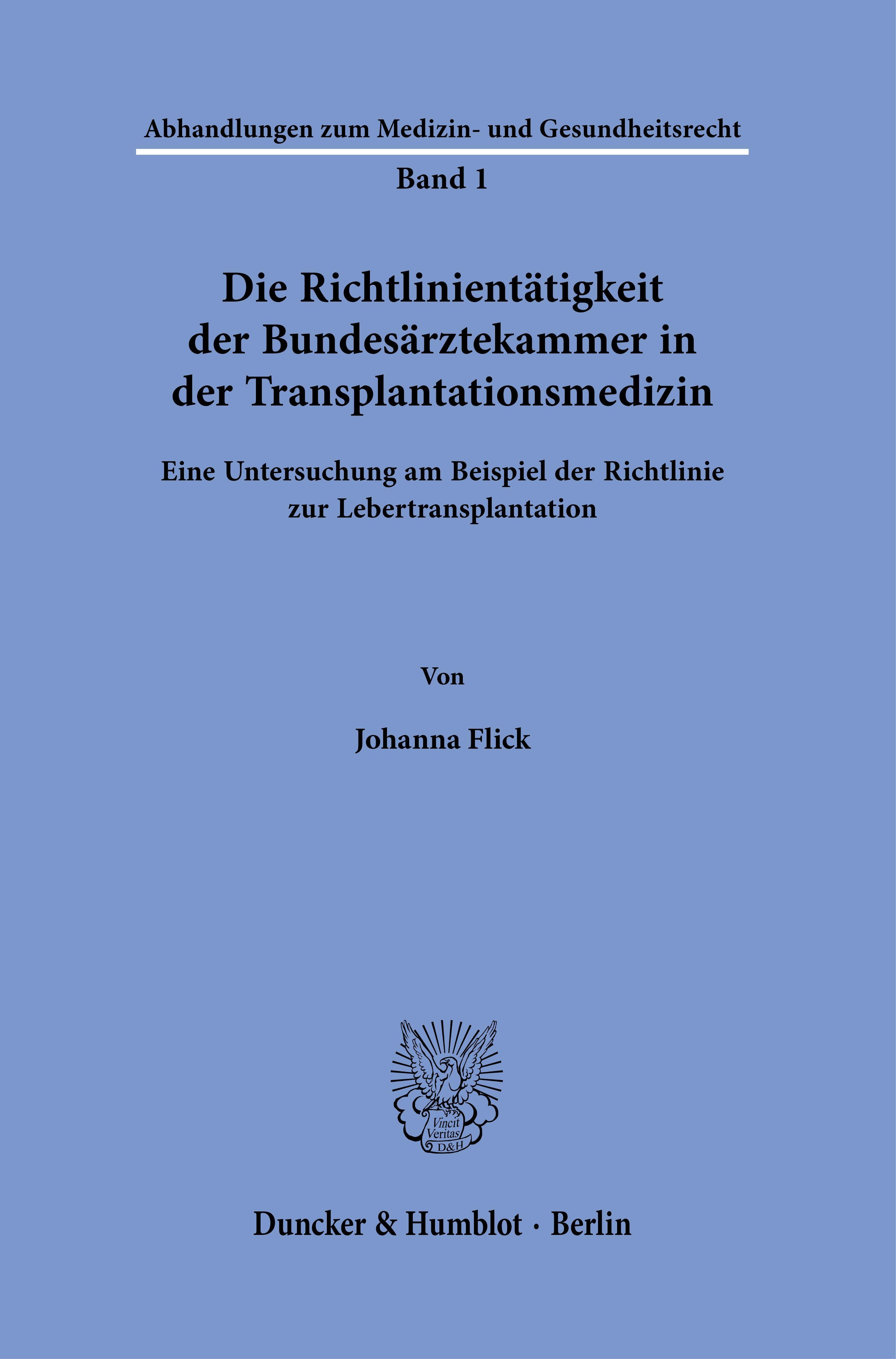 Die Richtlinientätigkeit der Bundesärztekammer in der Transplantationsmedizin. (niemiecki)