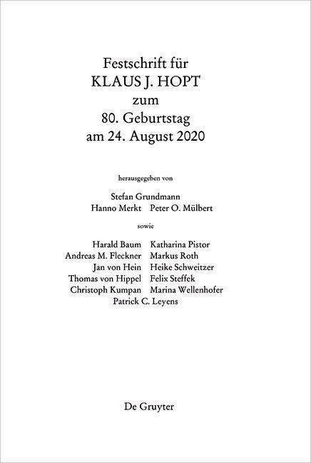 Festschrift für Klaus J. Hopt zum 80. Geburtstag am 24. August 2020 (niemiecki)