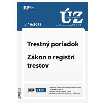 Trestný poriadok, Zákon o registri trestov podľa právneho stavu k 18. 3. 2019 (Úplne znenia zákonov 16/2019). Úplné znenie zákona č. 301/2005 Z. z. TRESTNÝ PORIADOK przeczytaj całość
