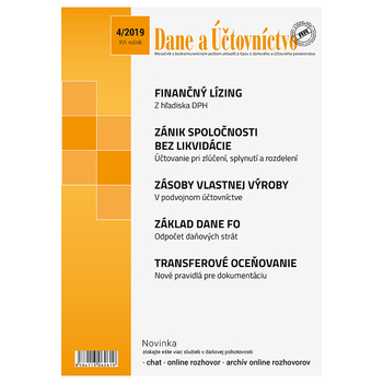 V štvrtom čísle vydania Dane a účtovníctvo nájdete ďalšie zaujímavé témy - finančný lízing z hľadiska DPH, účtovanie zásob vlastnej výroby, nezdaniteľné časti základu dane platné od 1. 1. 2019, k základu dane a odpočítavaniu daňových strát FO a iné. przeczytaj całość