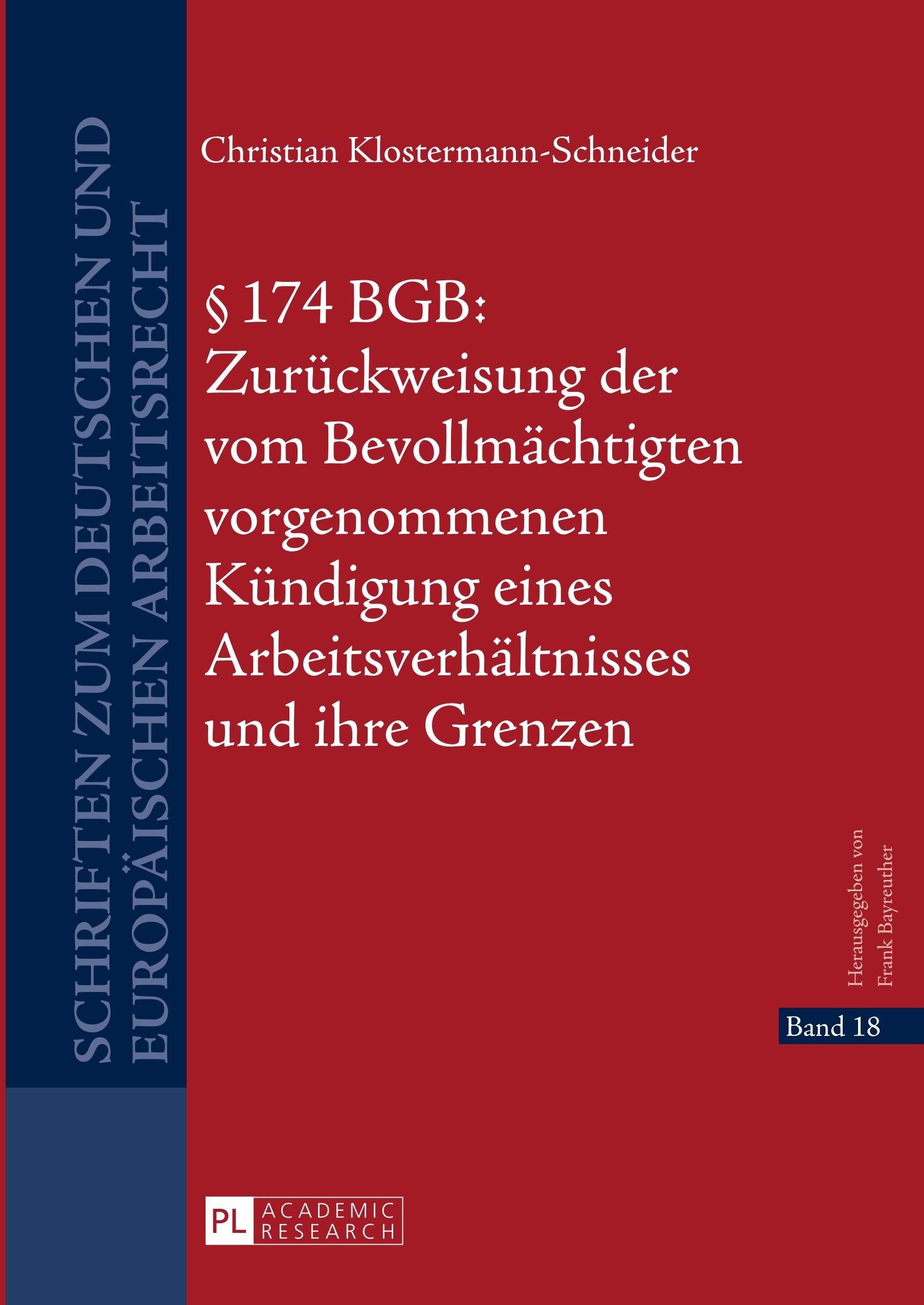 § 174 BGB: Zurückweisung der vom Bevollmächtigten vorgenommenen Kündigung eines Arbeitsverhältnisses und ihre Grenzen (niemiecki)