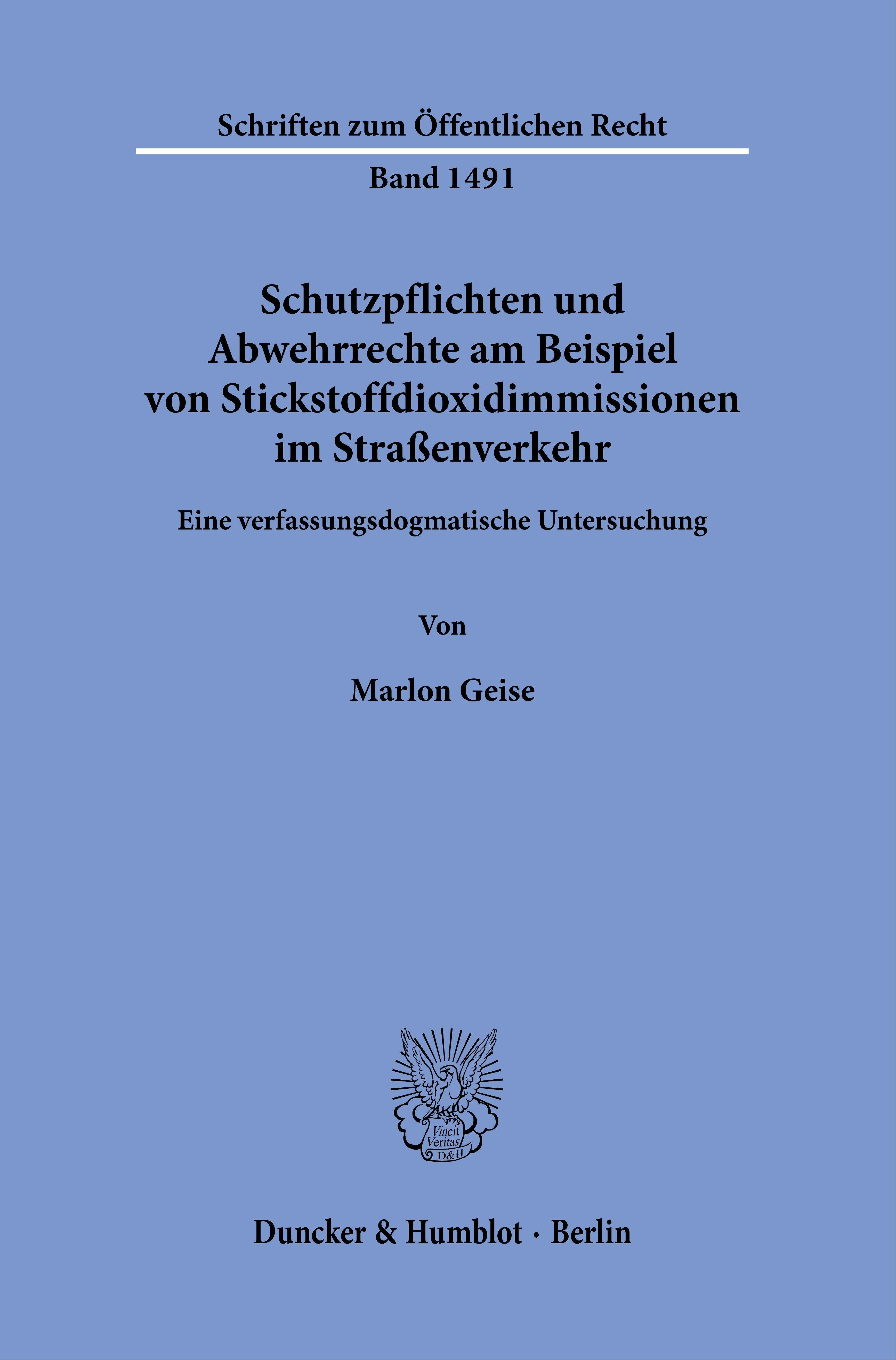 Schutzpflichten und Abwehrrechte am Beispiel von Stickstoffdioxidimmissionen im Straßenverkehr. (niemiecki)