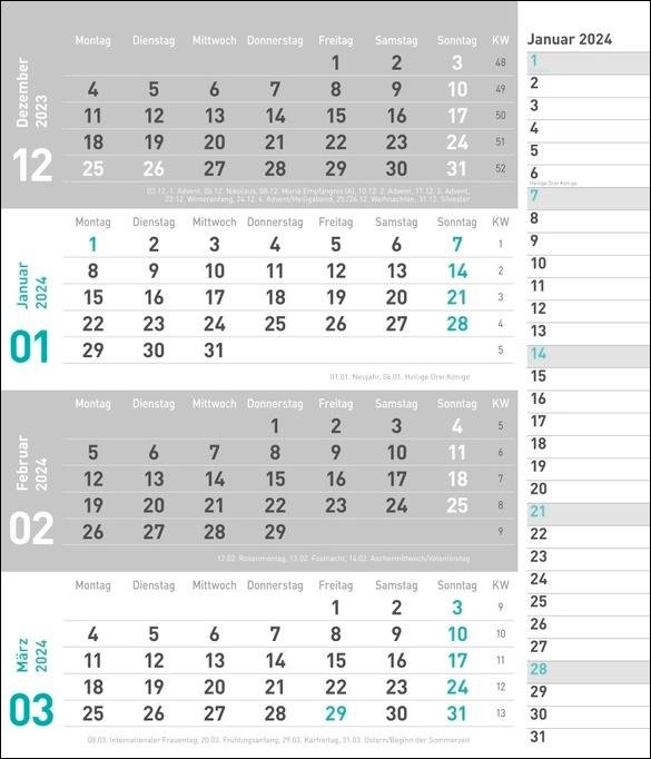 times&more 4-Monatsplaner, türkis 2024 (niemiecki)