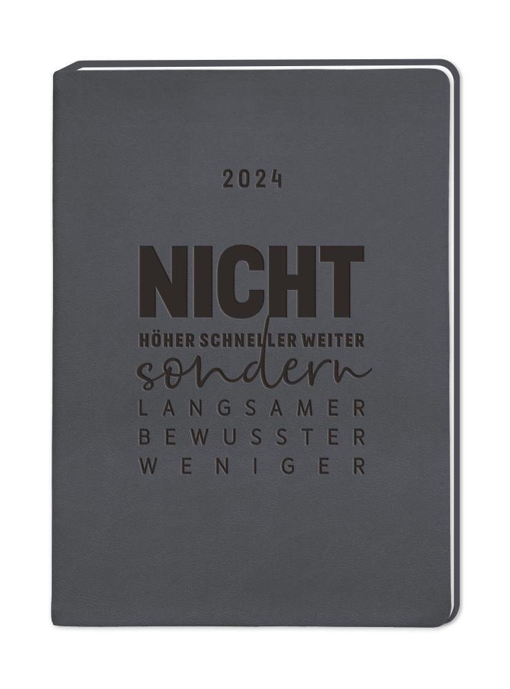 Terminplaner Lederlook 2024 Schwarz (niemiecki)