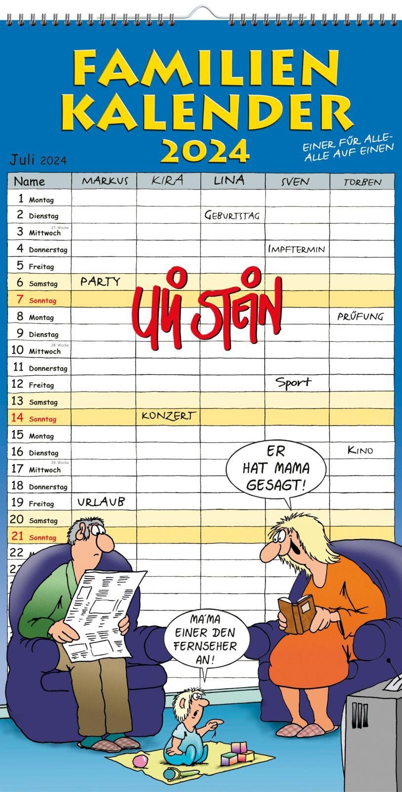 Uli Stein Familienkalender 2024: Familienplaner mit 5 Spalten (niemiecki)