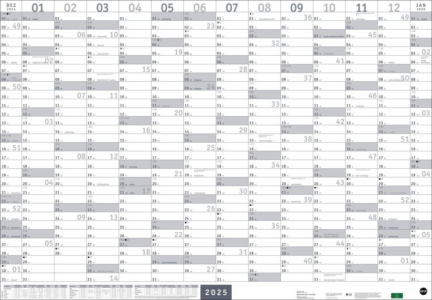 Mega-Posterplaner, silber 2025 (niemiecki)