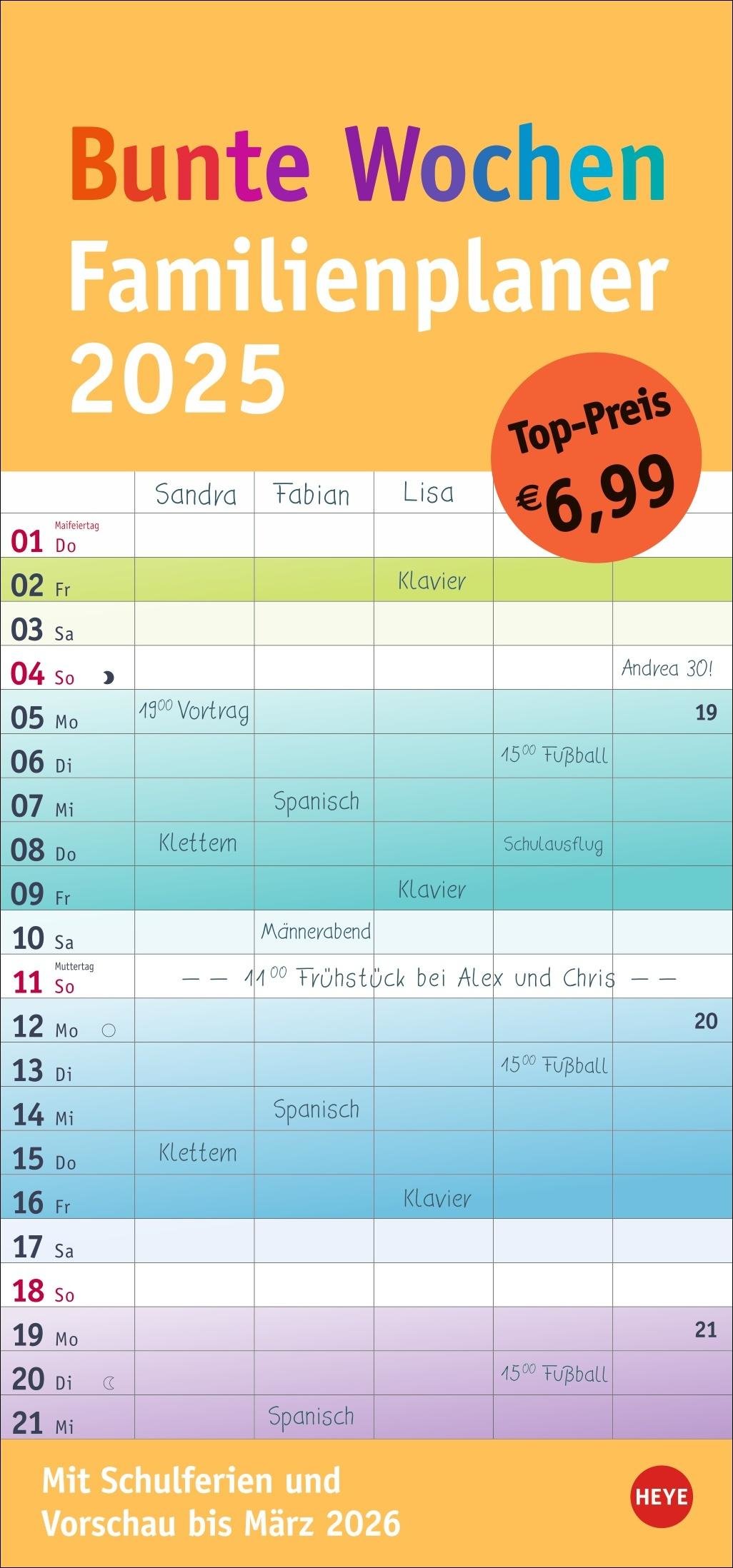 Bunte Wochen Familienplaner 2025 (niemiecki)