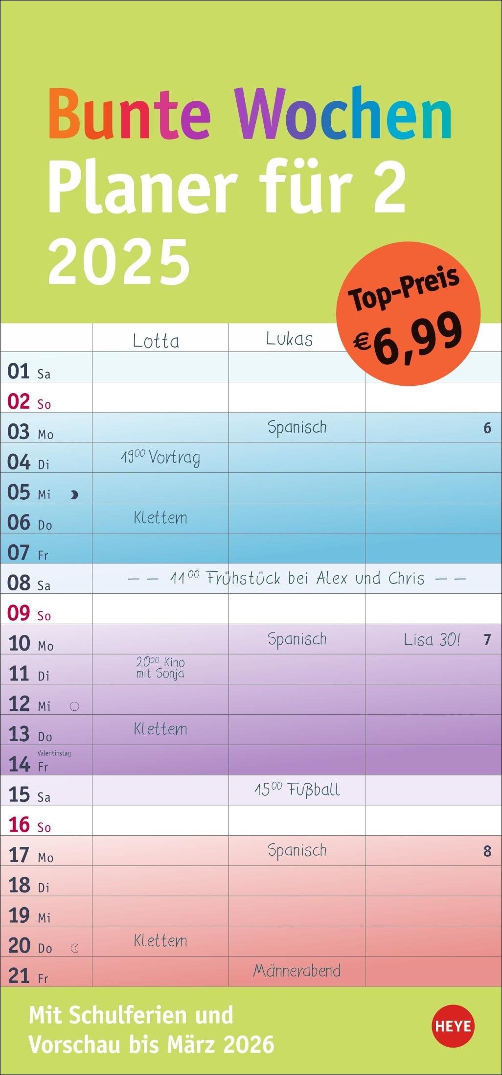 Bunte Wochen Planer für 2 2025 (niemiecki)