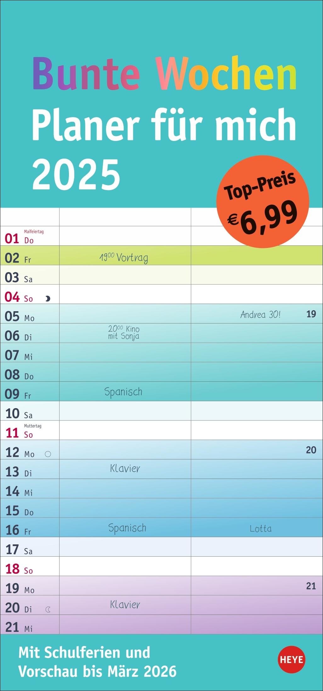 Bunte Wochen Planer für mich 2025 (niemiecki)