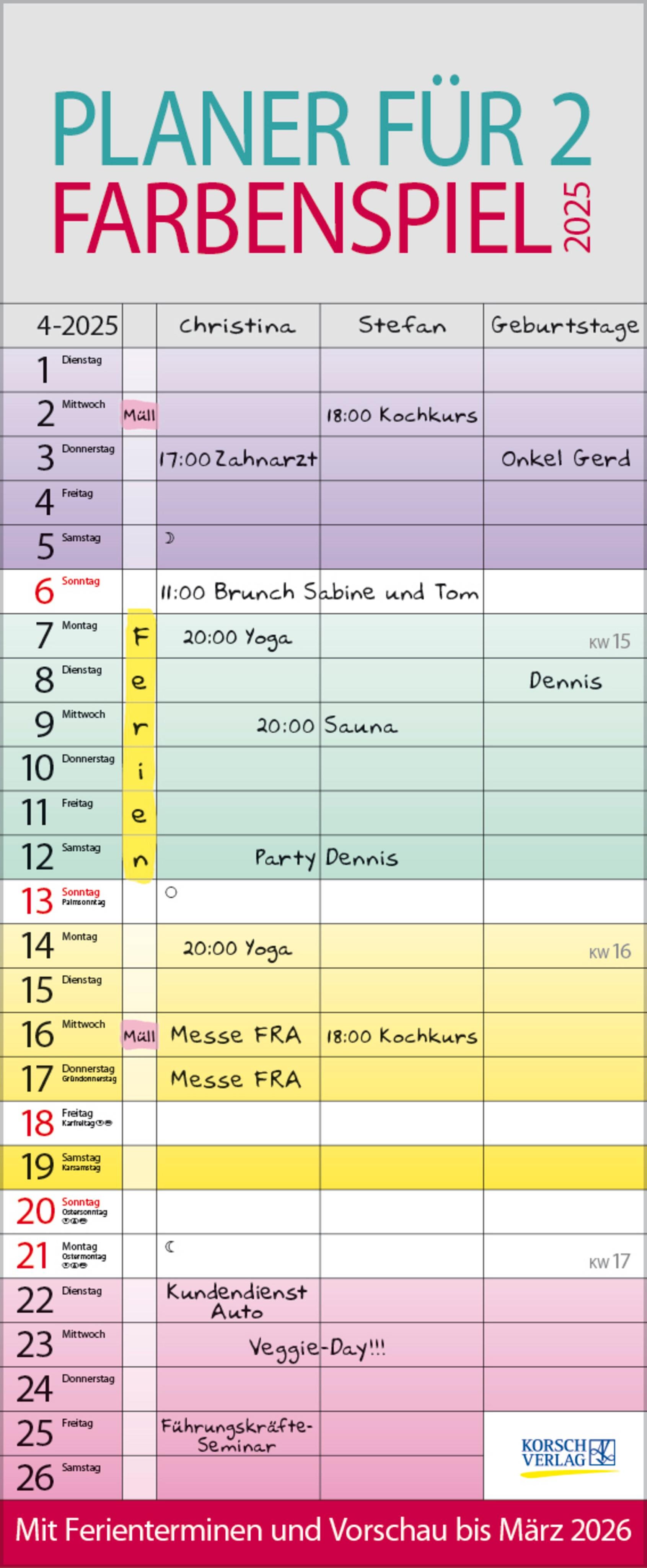 Farbenspiel - Planer für 2 2025 (niemiecki)