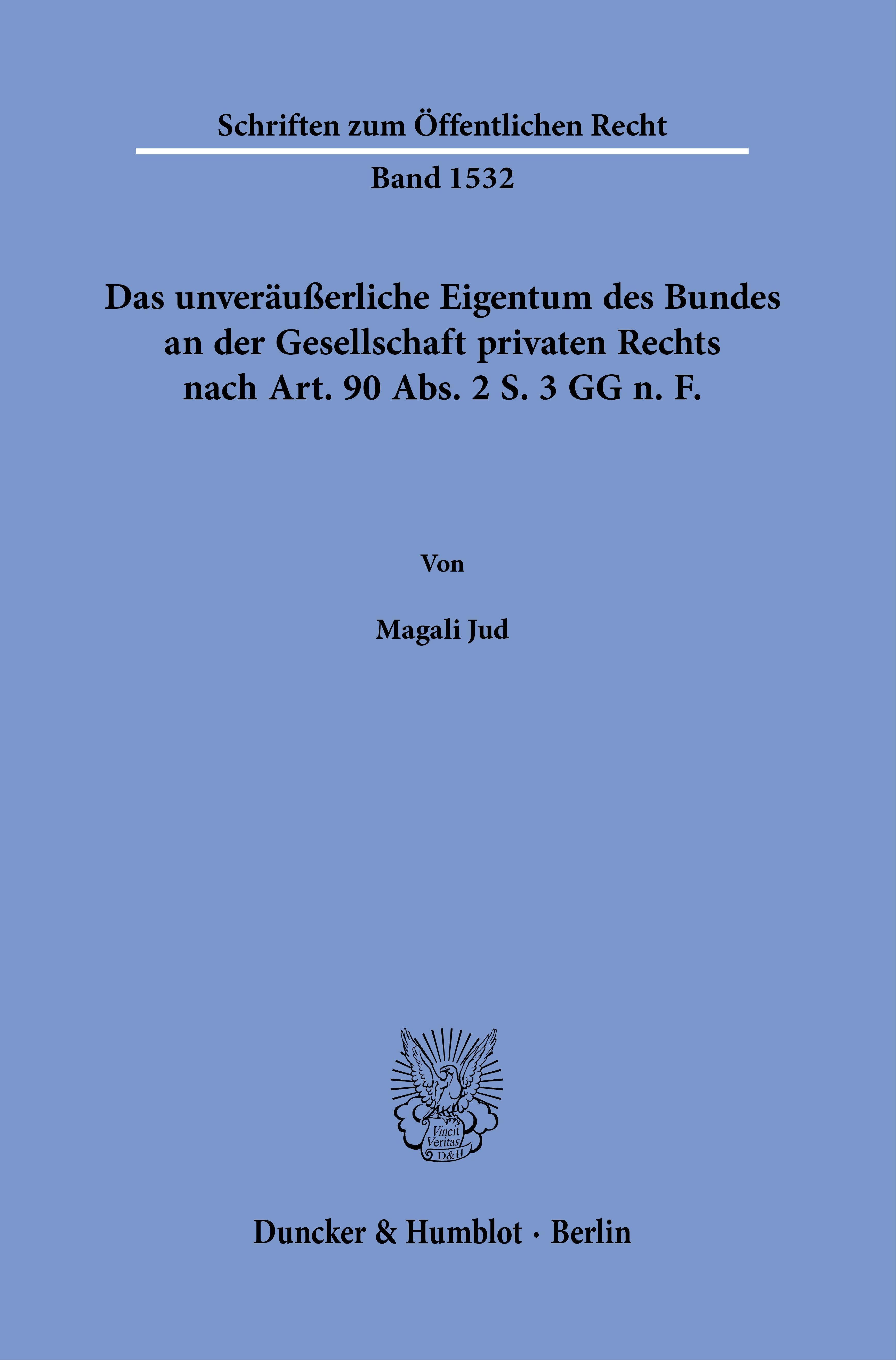Das unveräußerliche Eigentum des Bundes an der Gesellschaft privaten Rechts nach Art. 90 Abs. 2 S. 3 GG n.¿F. (niemiecki)