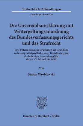 Die Unvereinbarerklärung mit Weitergeltungsanordnung des Bundesverfassungsgerichts und das Strafrecht (niemiecki)