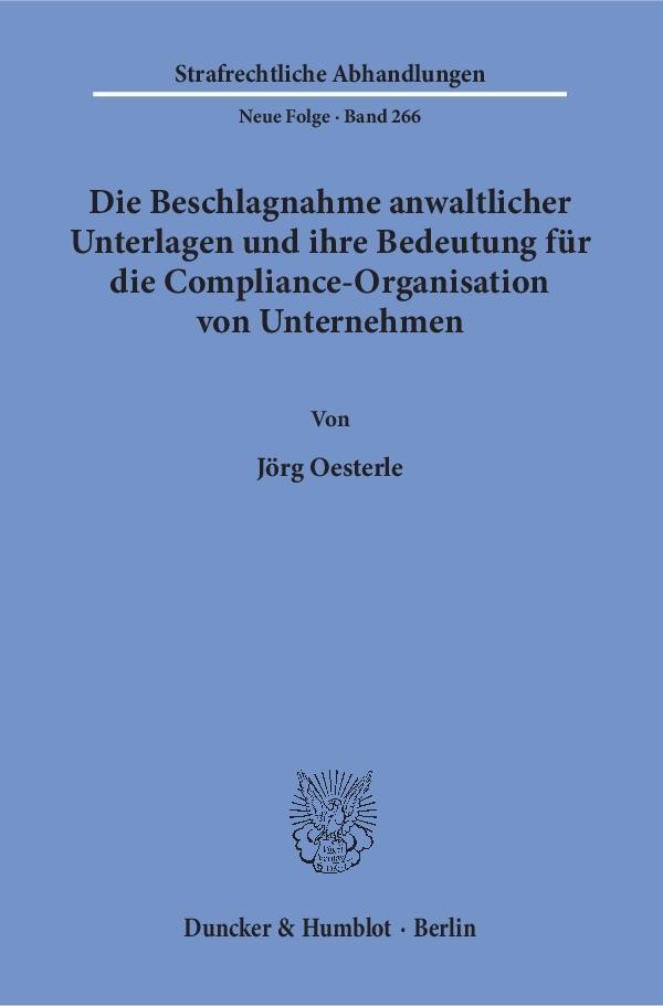 Die Beschlagnahme anwaltlicher Unterlagen und ihre Bedeutung für die Compliance-Organisation von Unternehmen (niemiecki)