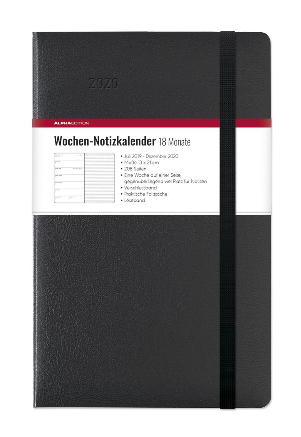 Wochen Notizkalender Black 2020 - Taschenplaner / Taschenkalender, 20 Monate, groß