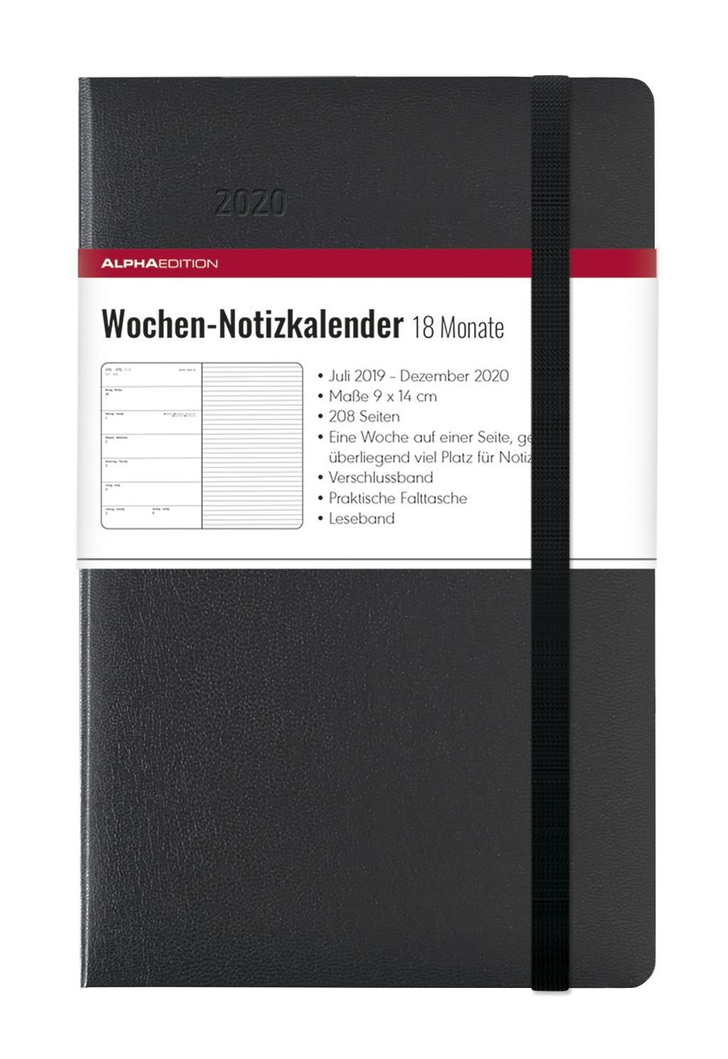 Wochen Notizkalender Black 2020 - Taschenplaner / Taschenkalender, 20 Monate, klein