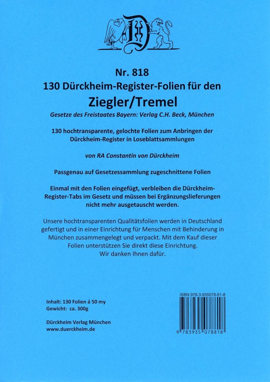 DürckheimRegister®-FOLIEN ZIEGLER/TREMEL Gesetze des Freistaates Bayern (niemiecki)