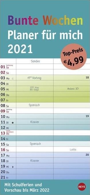 Bunte Wochen Planer für mich - Kalender 2021 (niemiecki)