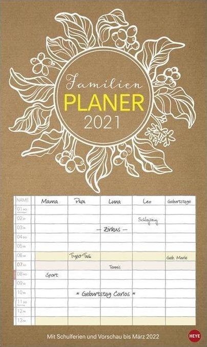 Chalk Drawing Familienplaner XL Kalender 2021 (niemiecki)