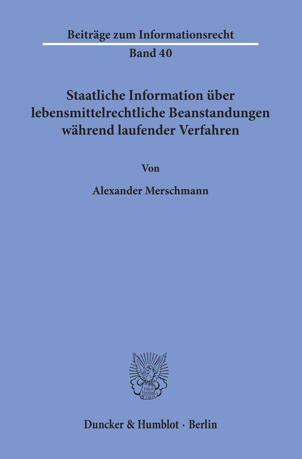 Staatliche Information über lebensmittelrechtliche Beanstandungen während laufender Verfahren. (niemiecki)