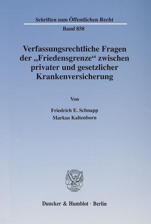 Verfassungsrechtliche Fragen der Friedensgrenze zwischen privater und gesetzlicher Krankenversicherung. (niemiecki)