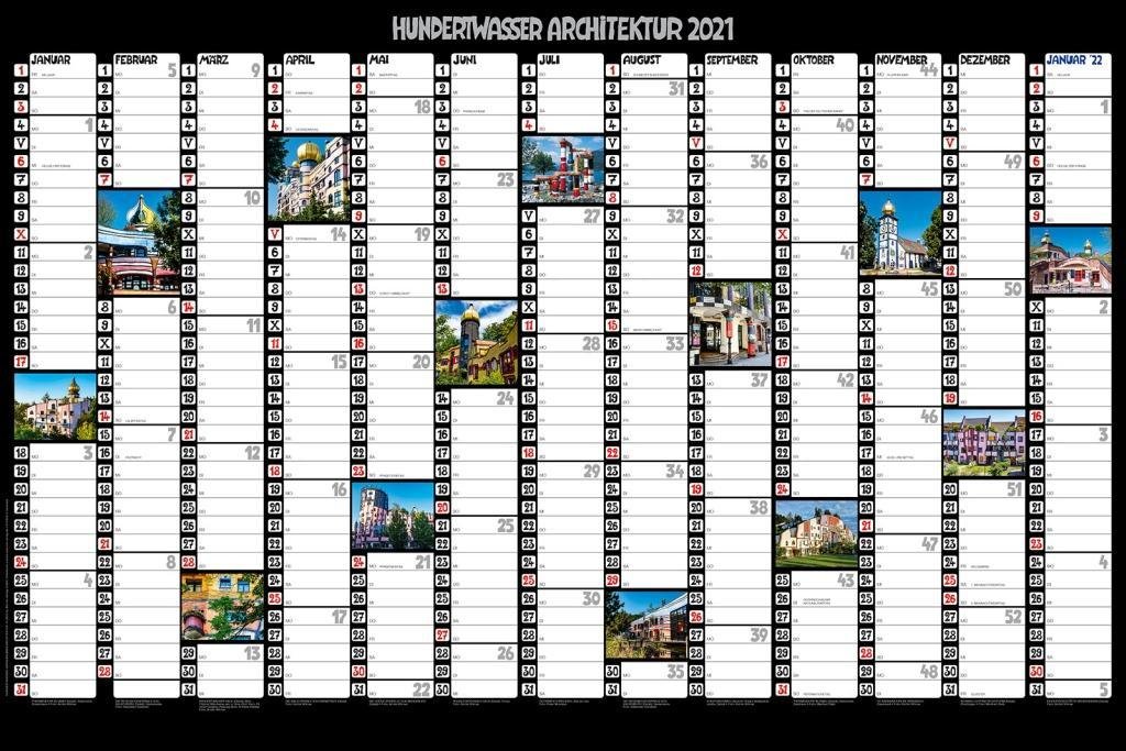 Hundertwasser Jahresplaner Architektur 2021 (niemiecki)