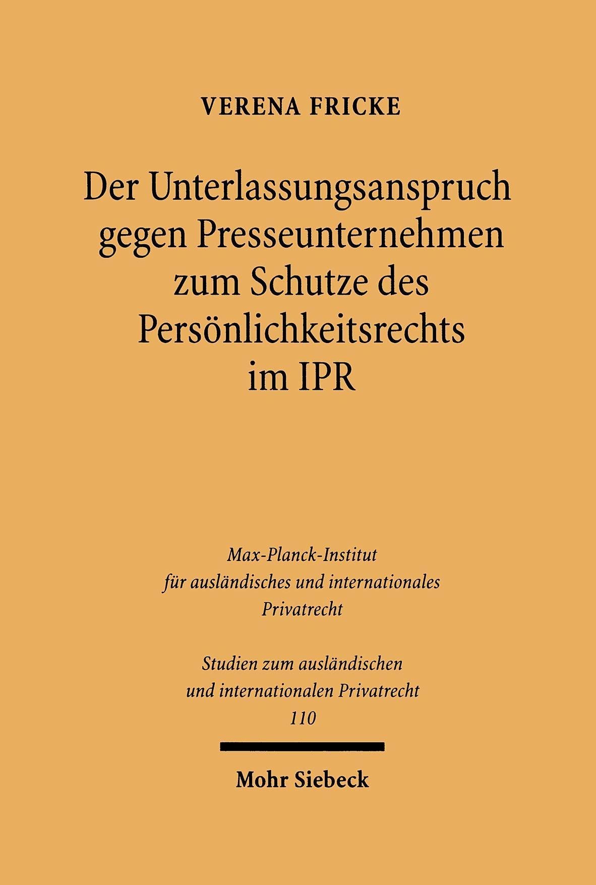 Der Unterlassungsanspruch gegen Presseunternehmen zm Schutze des Persönlichkeitsrechts im Internationalen Privatrecht (niemiecki)