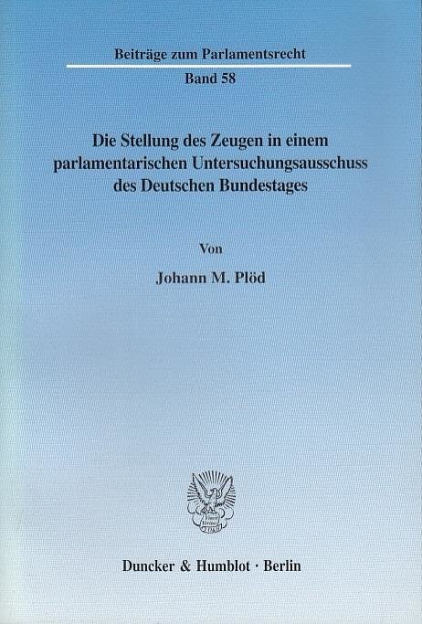 Die Stellung des Zeugen in einem parlamentarischen Untersuchungsausschuss des Deutschen Bundestages (niemiecki)