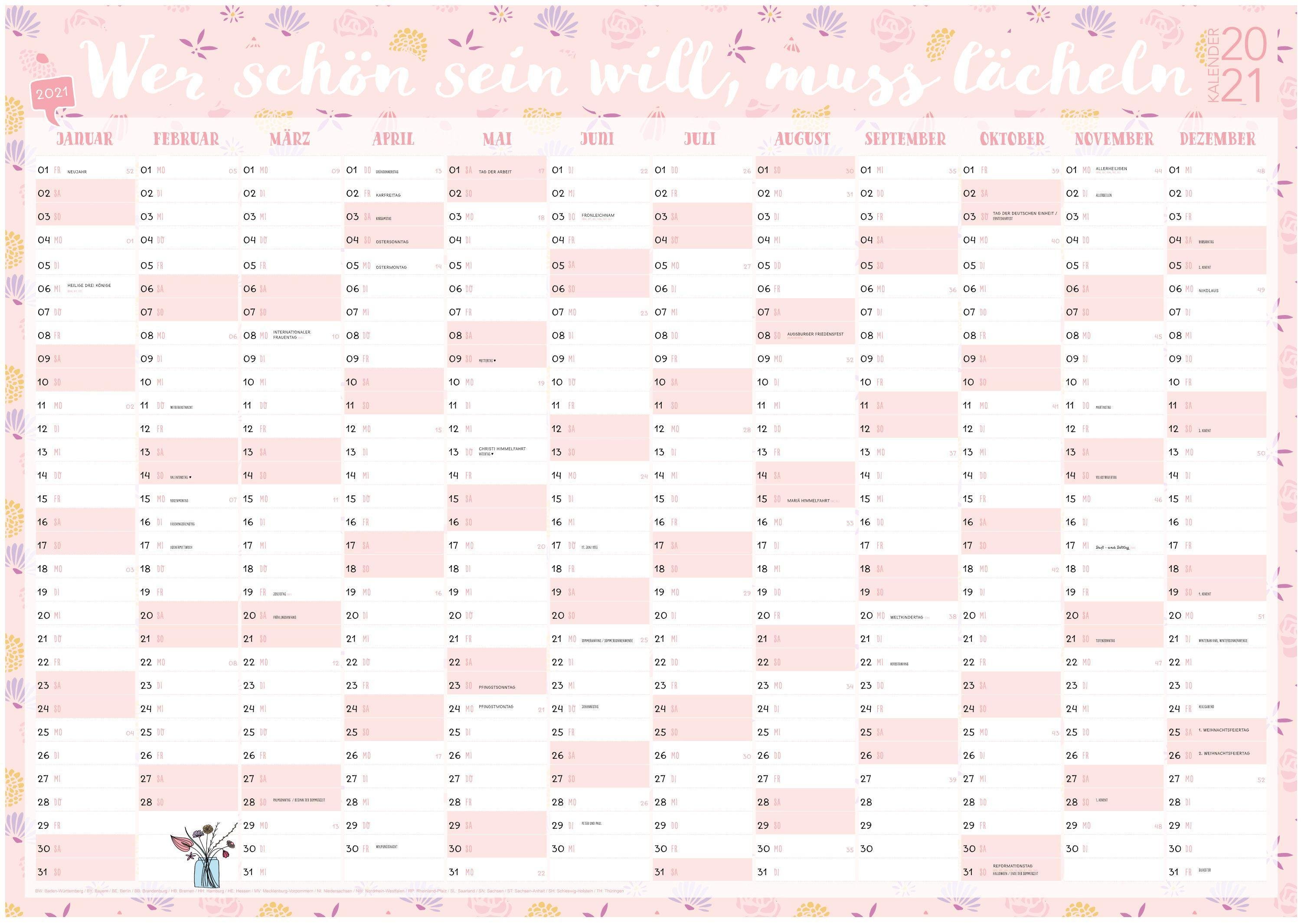 Großer rosa Wandkalender 2021 in DIN A1 (84 x 59,4 cm) für zu Hause oder das Büro. Rosa XXL Wandplaner, Jahreskalender für 12 Mo (niemiecki)