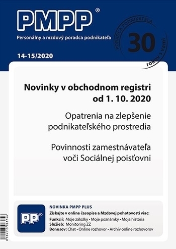 Dvojčíslo PMPP v mesiace september prináša tieto zaujímavé témy - novinky v obchodnom registri od 1. 10. 2020, opis podnikateľského kilečka, zmeny v povinnostiach zamestnávateľov súvisiace s BOZP, povinnosti zamestnávateľa voči Sociálnej poisťovni, postupy a povinnosti zamestnávateľa pri vykonávaní zrážok zo mzdy, prekážky v práci na strane zamestnávateľa i zamestnanca a iné.