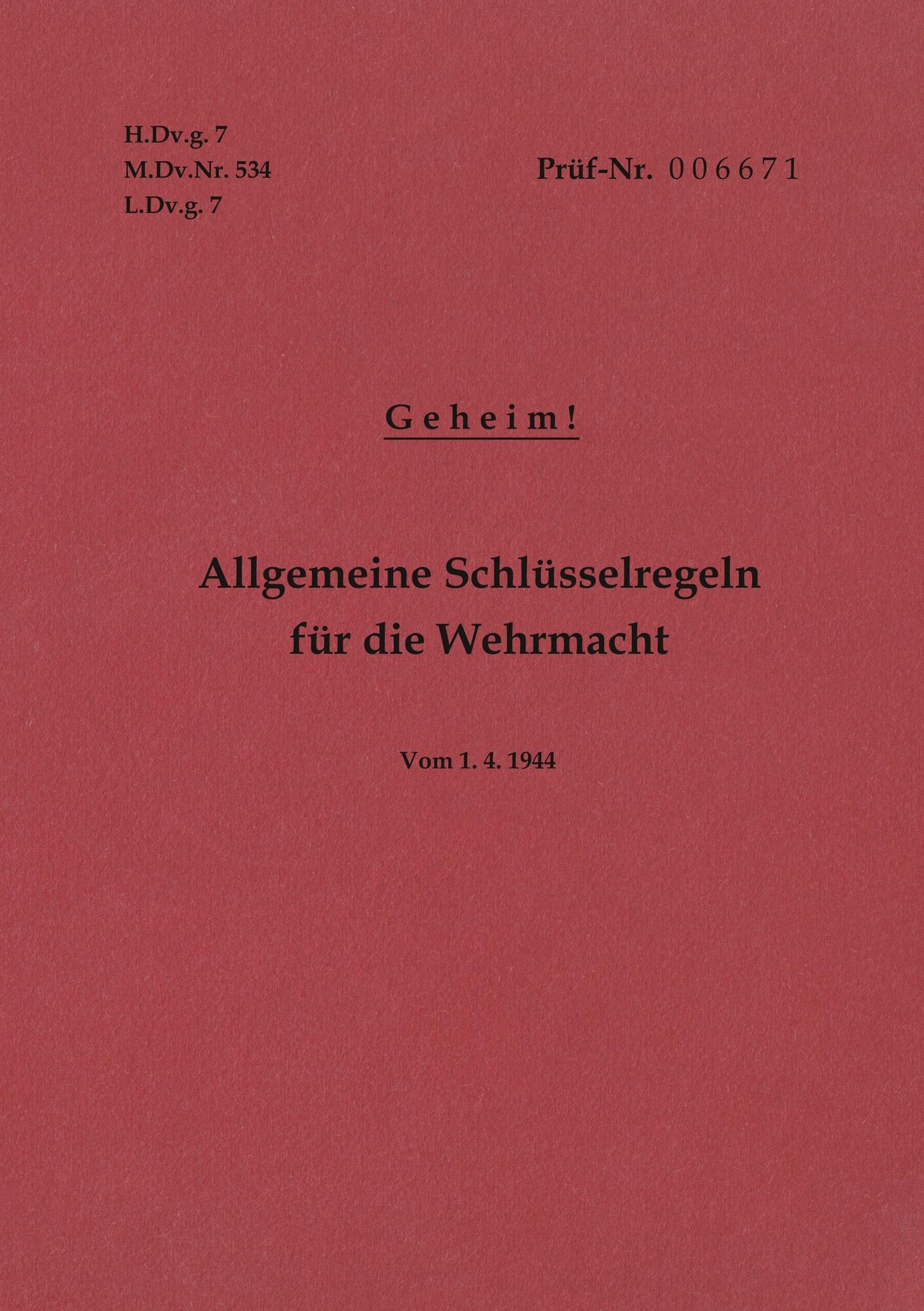 H.Dv.g. 7, M.Dv.Nr. 534, L.Dv.g. 7 Allgemeine Schlüsselregeln für die Wehrmacht - Geheim - Vom 1.4.1944 (niemiecki)