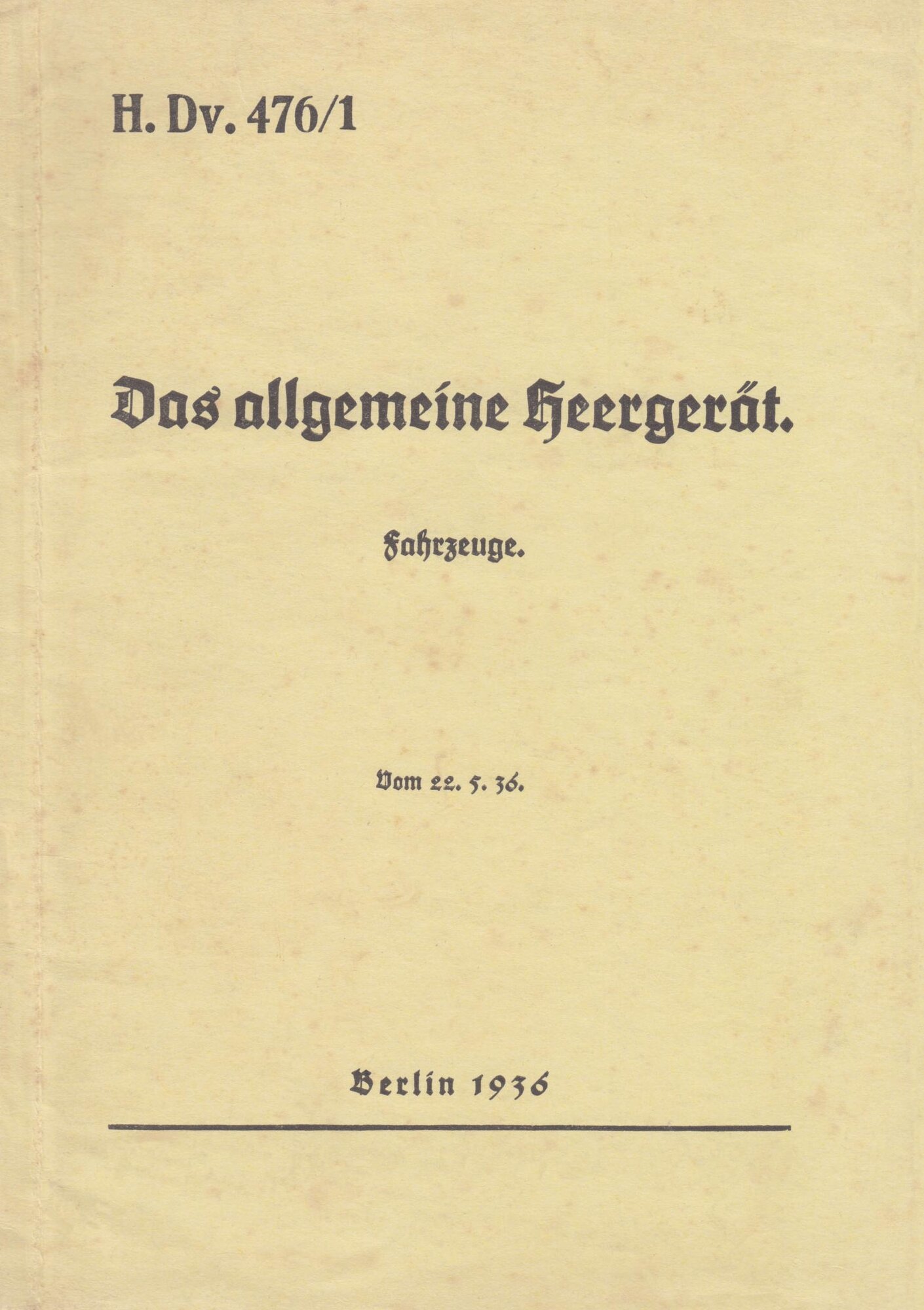 H.Dv. 476/1 Das allgemeine Heergerät - Fahrzeuge - Vom 22.5.1936 (niemiecki)