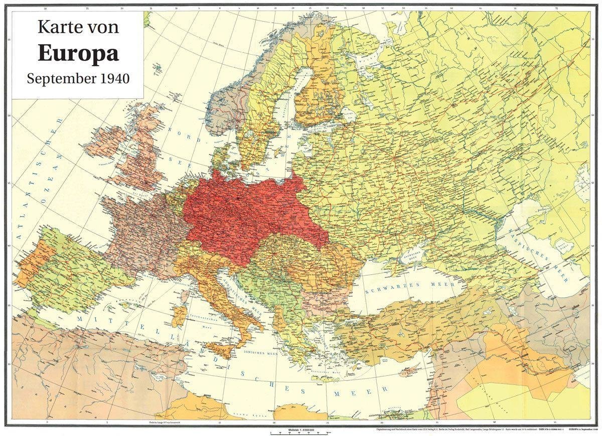 Historische Karte: EUROPA im September 1940 (gerollt) (niemiecki)