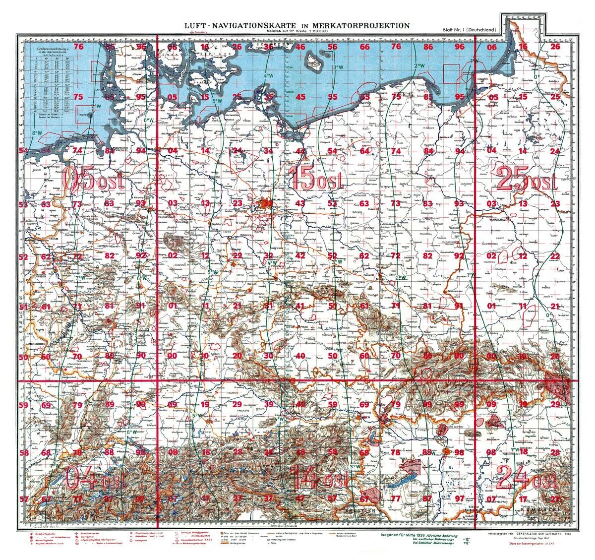 LUFT-NAVIGATIONSKARTE Deutschland mit Bodenorganisation der Luftwaffe 1943 (Plano) (niemiecki)