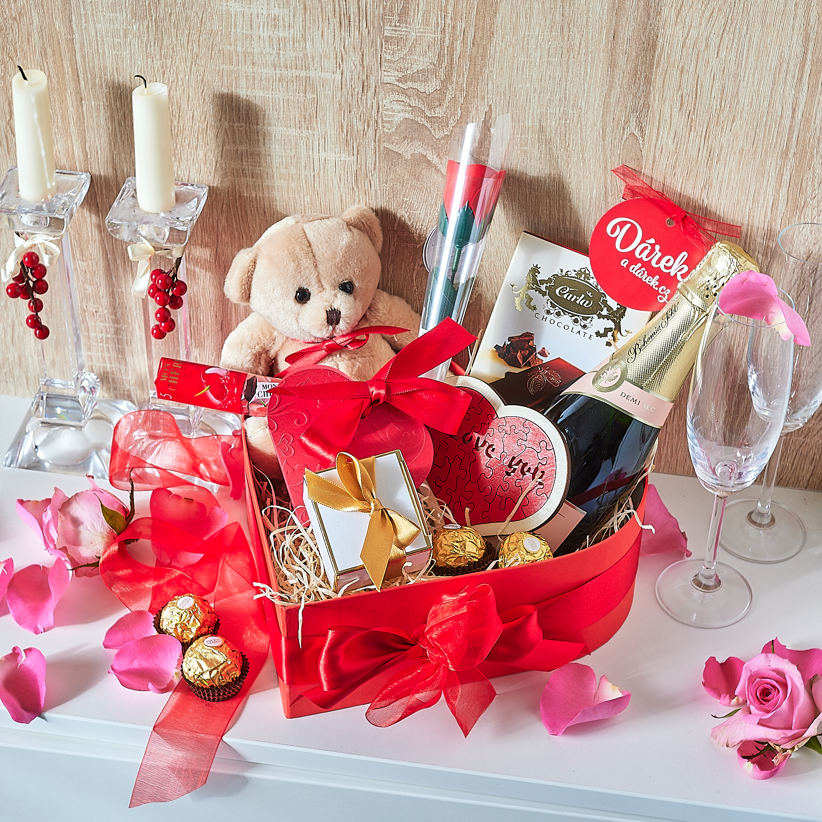 Srdce, dárková krabice Plyšový méďa Bohemia sekt rosé, 0,375l Luxusní čokoláda Carla Mýdlová růžeČokoládová tyčina Mon Chéri Krabička ve tvaru srdce s mašlí Citáty o lásce Ferrerro Rocher pralinky Puzzle I LOVE YOU Krabička bílo zlatá s mašlí S nádhernou mašlí v celofánu przeczytaj całość