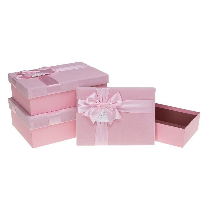 Zestaw pudełek prezentowych z kokardą 3szt różowyWymiary pudełek:S: 23x17x6.5cmM: 26x19x8cmL: 29x21x9,6cm przeczytaj całość