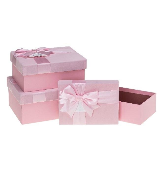 Zestaw pudełek prezentowych z kokardą 3szt różowyWymiary pudełek:S: 17x12x6cmM: 19,5x13,5x7,5cmL: 22x15,5x9cm przeczytaj całość