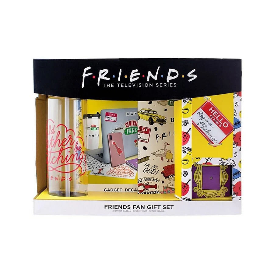 Dárková sada pro fanoušky oblíbeného amerického seriálu Přátelé (Friends) obsahuje originální láhev na vodu, klíčenku v podobě jmenovky Regina Phalange , sadu samolepek vhodných např. na váš smartphone nebo laptop, blok a hrací karty s motivy oblíbeného seriálu. Láhev je určena pouze pro studené nápoje, není vhodná do mikrovlnky a myčky nádobí.