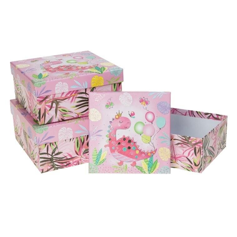 Pudełko prezentowe dziecięce 3szt dinozaury ROZETTEWymiary pudelek:S:15.5x15.x7.5cm M:18x18x8.5cm L:20x20x9.5cm przeczytaj całość