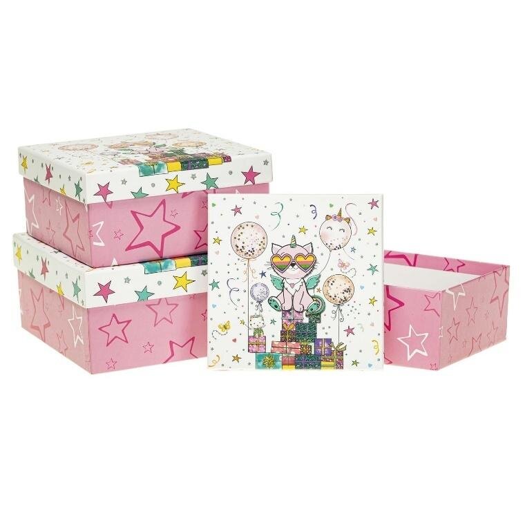 Pudełko prezentowe dziecięce 3szt urodziny ROZETTEWymiary pudelek:S: 15x15x7.5cm M: 18x18x8.5cmL: 20x20x9.5cm przeczytaj całość