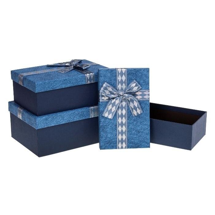 Pudełko prezentowe z kokardą 3szt niebieskie ROZETTEWymiary pudelek:S: 19x12x6,5cmM: 21x14x8cmL: 23x16x9,5cm przeczytaj całość