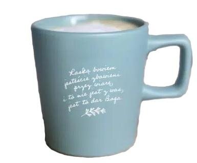 Kubek ceramiczny ŁASKĄ BOWIEMTen wyjątkowy kubek o pojemności 300ml, w stonowanym odcieniu błękitu, przeniesie Cię w świat spokoju i refleksji. Pochodzący z Listu do Efezjan werset, przypomina, że Bóg ma dla Ciebie pełnię łaski, kóra przemienia życie dając nam zbawienie!Matowy wykończenie kubka...