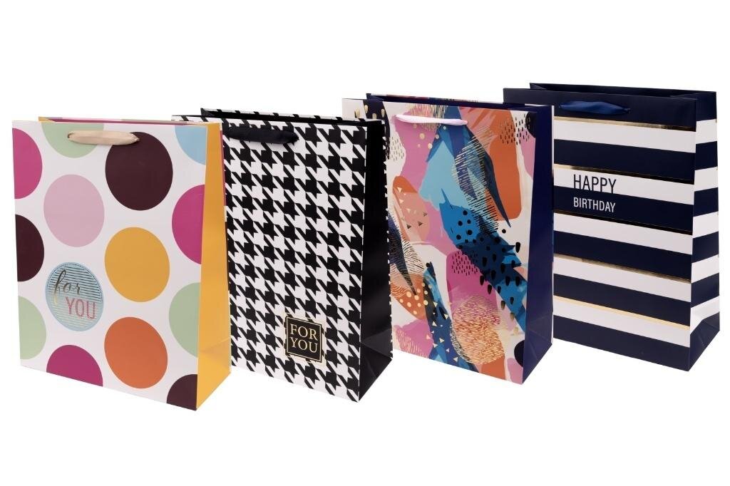 Torebka ozdobna o wymiarze 30x42x12cm.Dostępna w 4 kolorach.Posiada wzmacniany spód.Mix wzorów, produkt wysyłany losowo, cena za 1 sztukę przeczytaj całość