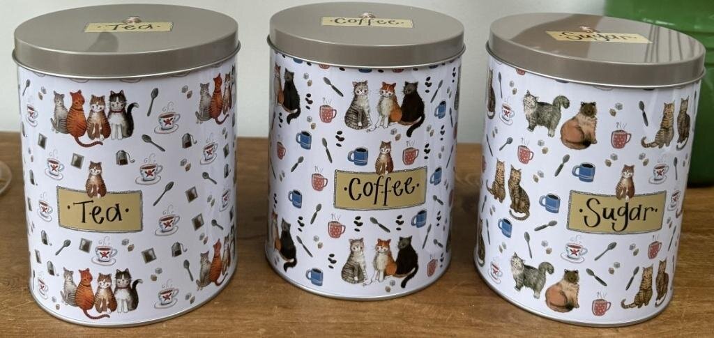 Zestaw 3 okrągłych, metalowych puszek do przechowywania herbaty, kawy oraz cukru. Kolorowe puszki stanowią nie tylko praktyczne opakowanie, ale także piękną ozdobę kuchni. Wykonane z wysokiej jakości metalu. Praktyczne wieczka zapewniają szczelność i ochronę przed wilgocią i światłem, a także skutecznie zabezpieczają przed utratą walorów smakowych. Należy myć tylko ręcznie. Wymiary 11 cm (średnica) x 14 cm (wysokość).