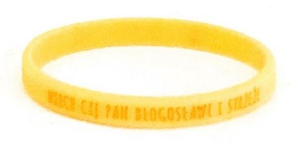 Opaska silikonowa na rękę:dla dzieci (mała)szerokość: 6 mmz tekstem: Niech cię pan błogosławi i strzeże. Lb 6,24 przeczytaj całość